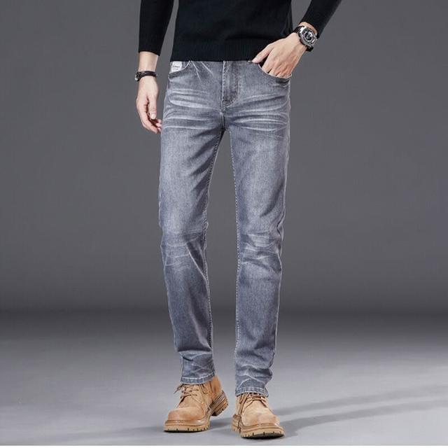 秋冬煙灰色牛仔褲男彈力修身直筒長褲高端輕奢秋季男士中年休閑褲