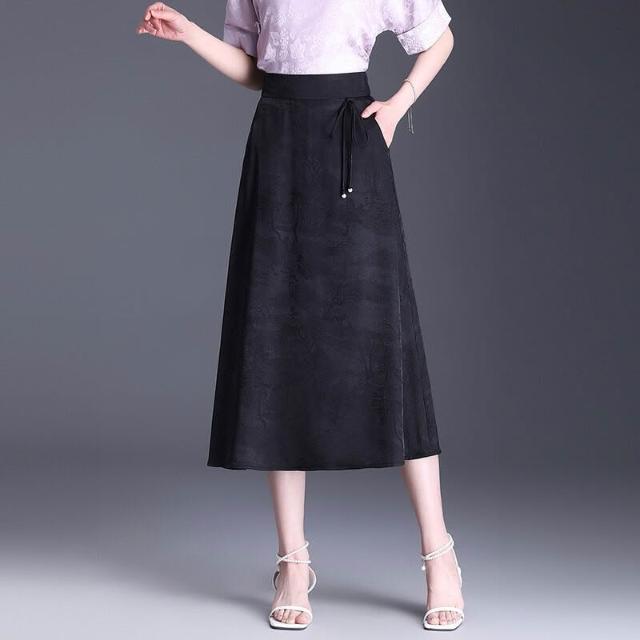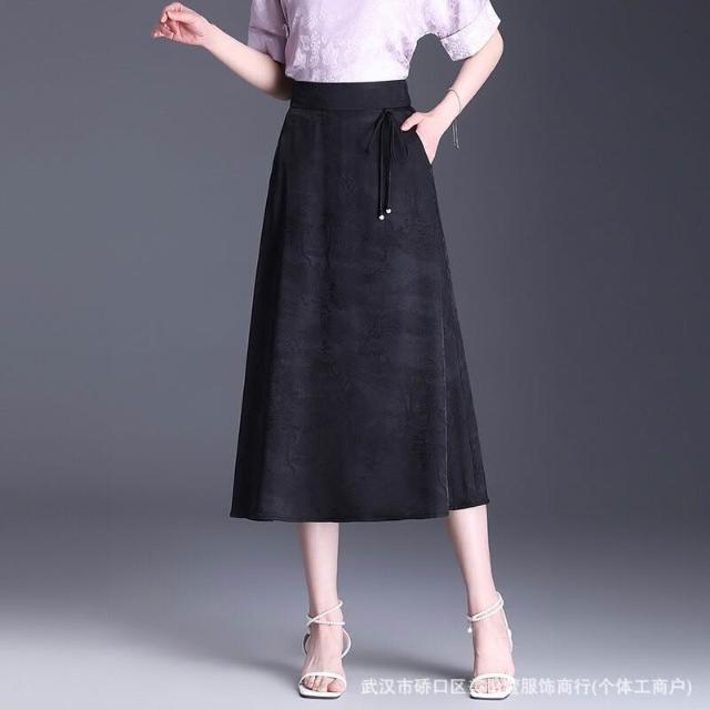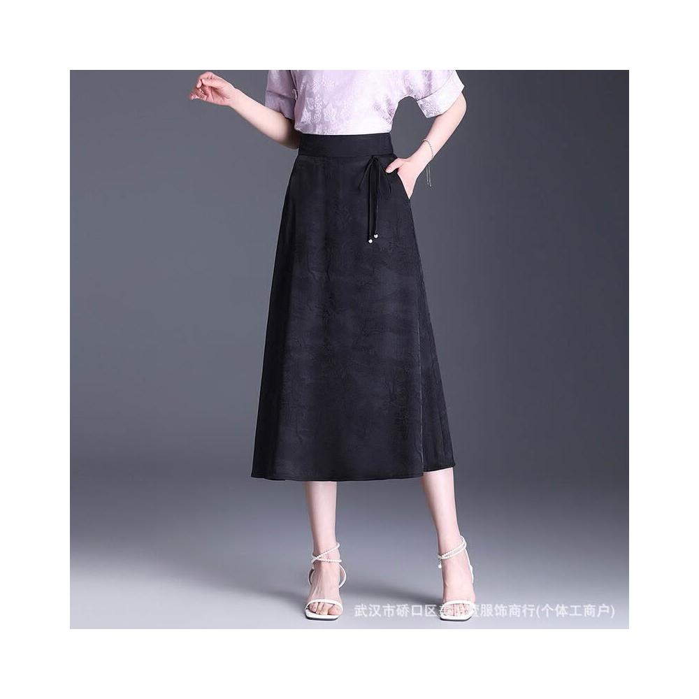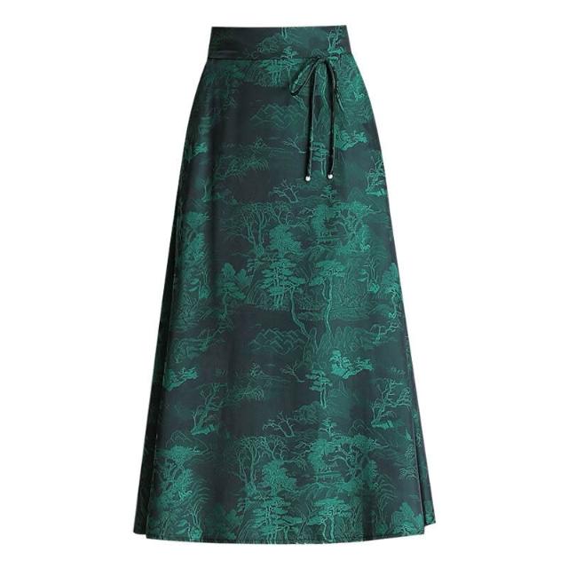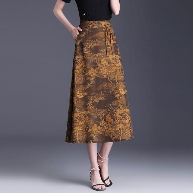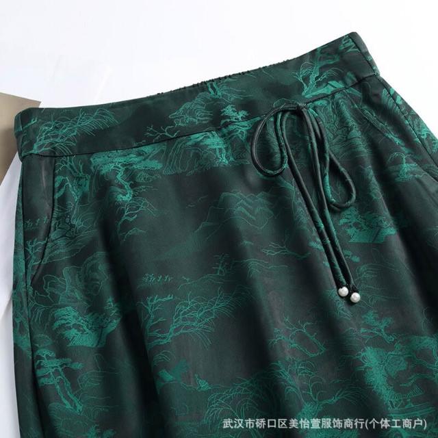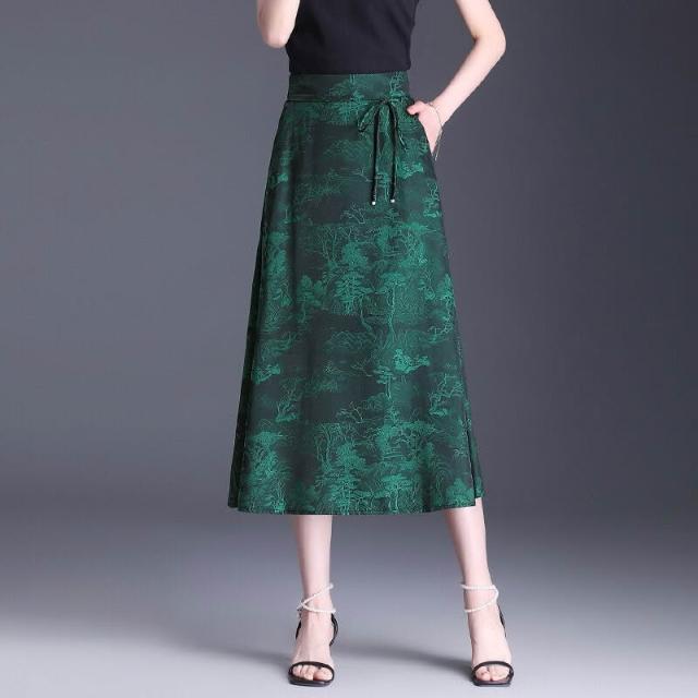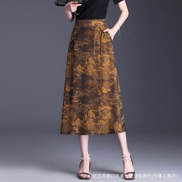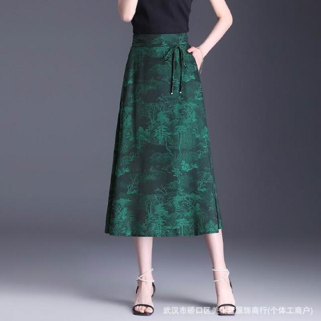 新中式垂感修身時尚A字裙2025夏季新款印花中長款高腰顯瘦半身裙