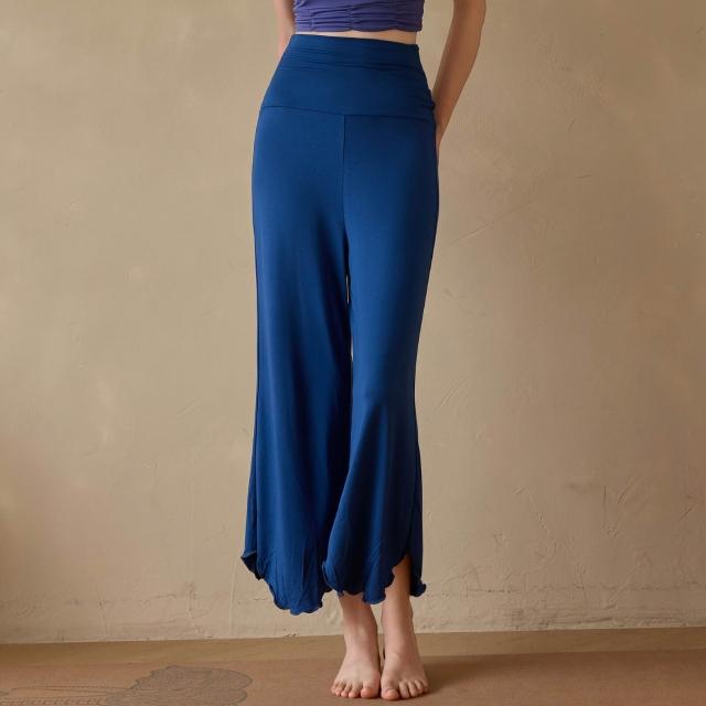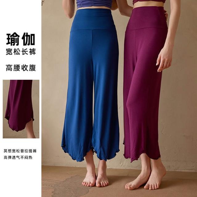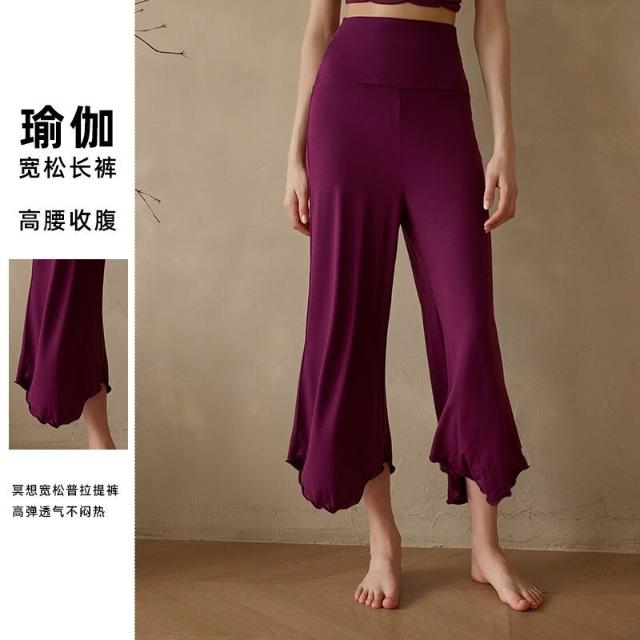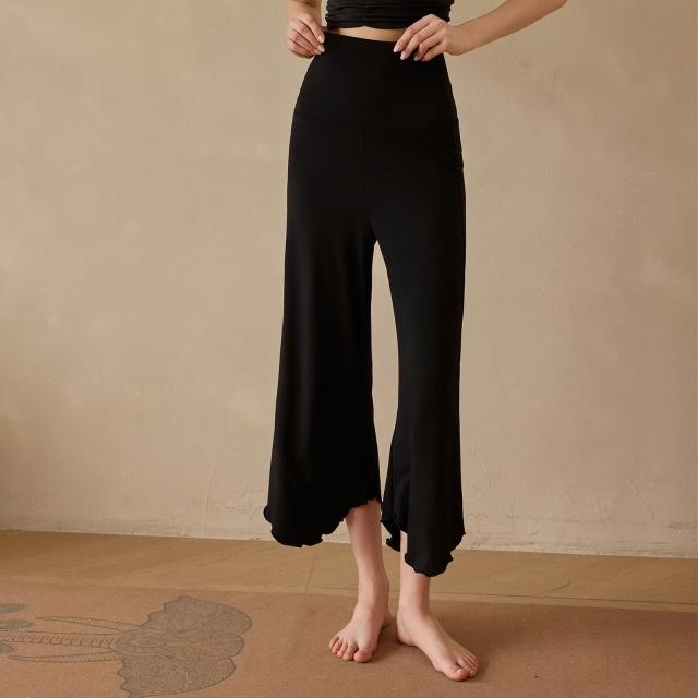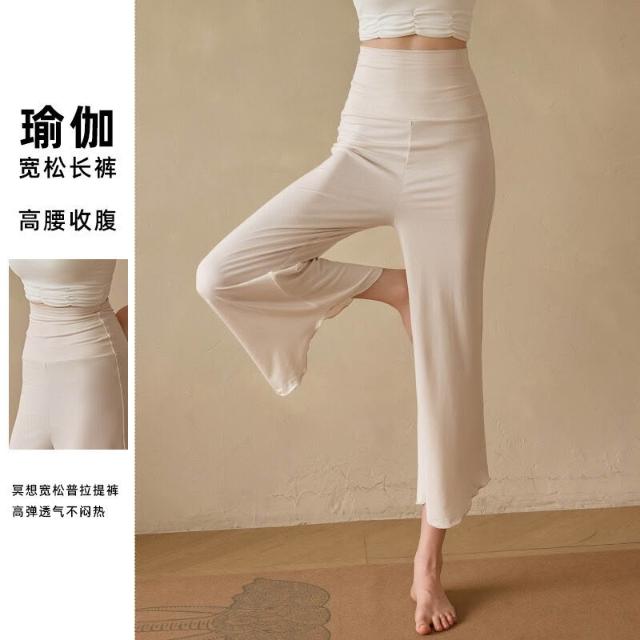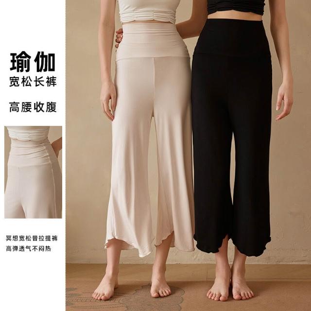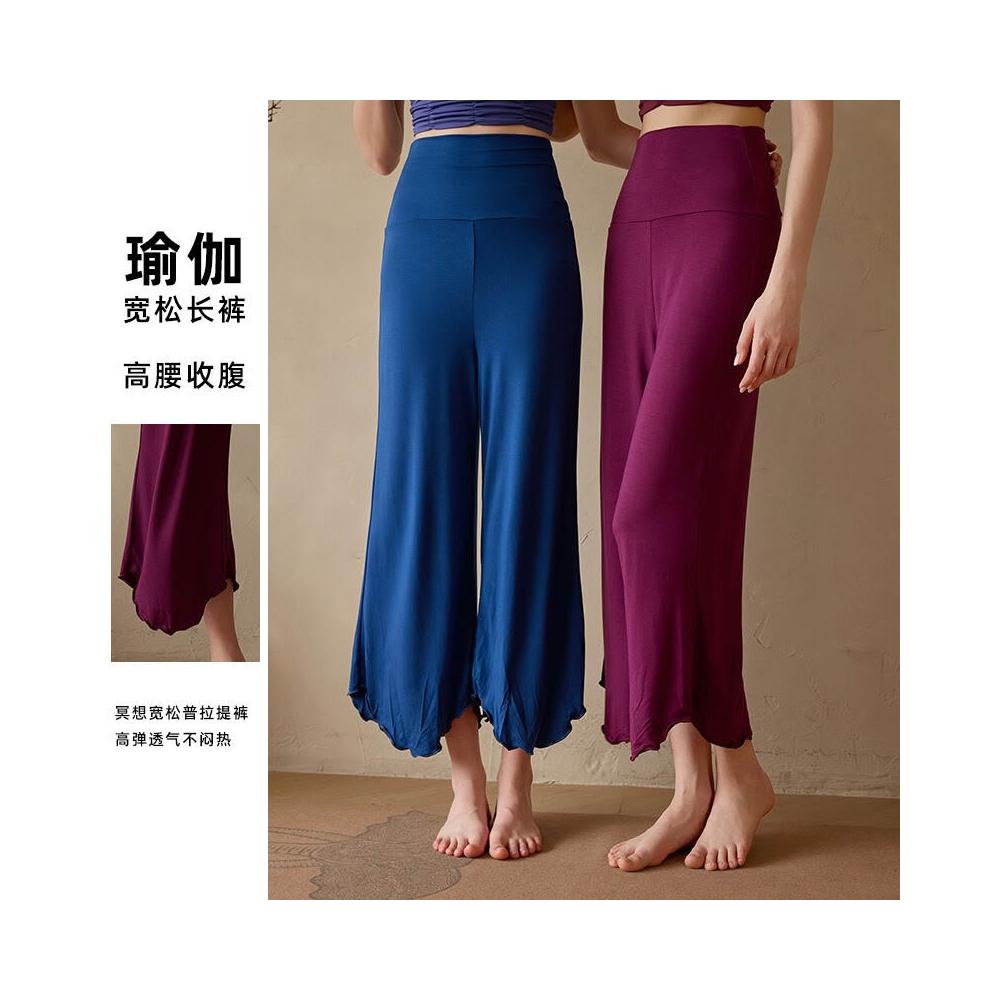 新款空氣寬松瑜伽褲內觀流春夏冥想闊腿褲普拉提九分褲純色運動褲