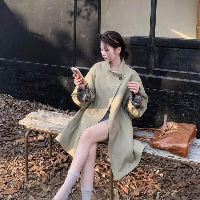 Benview諾丁山下2025春季撞色風衣外套廓形顯瘦寬松英倫風大