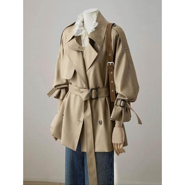短款風衣外套女春秋季新款雙排扣小個子高級感卡其色英倫大衣