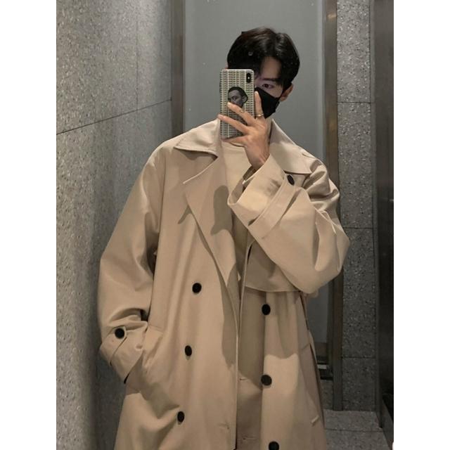 卡其色風衣外套男中長款2025春秋新款韓系潮牌休閑大衣感男裝