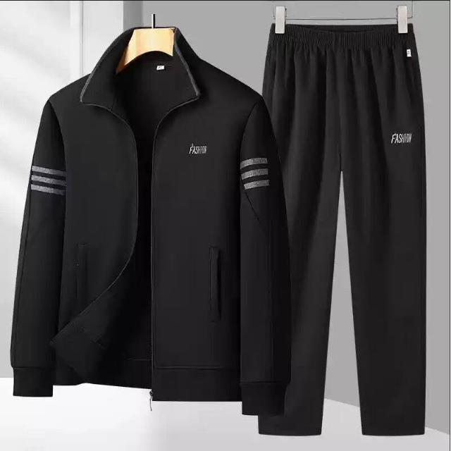 運動套裝 寬鬆立領兩件式 爸爸春秋裝 父親休閒套裝 中年男士運動服 跑步運動套 休閒兩件套 晨練運動服