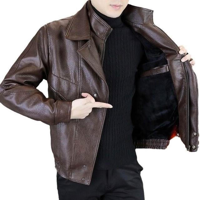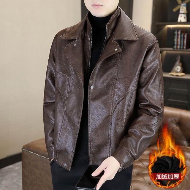 秋冬季加絨保暖皮夾克男士外套休閑時尚潮牌PU皮衣男裝外衣服