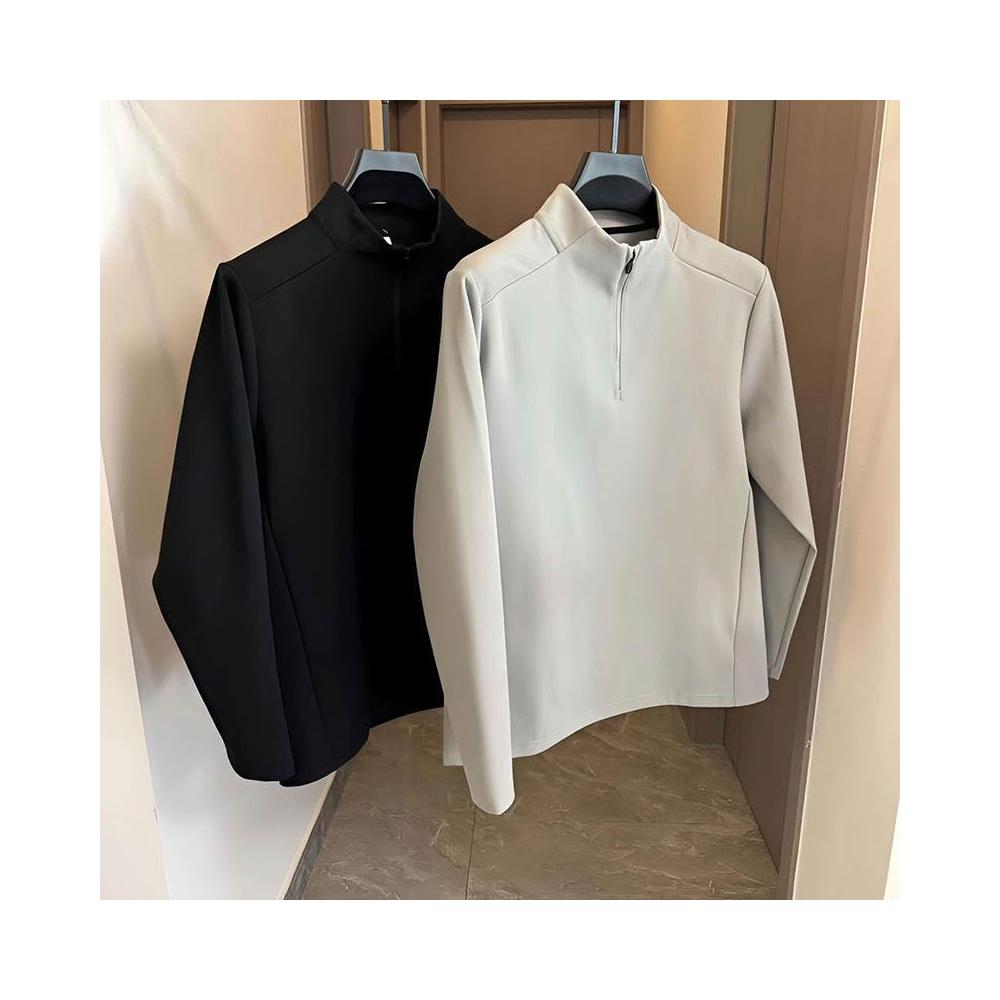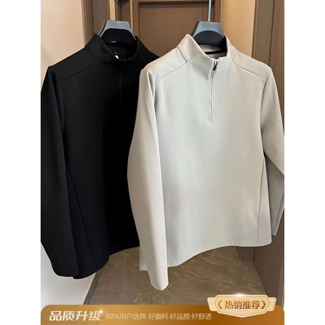 美式半拉鏈德絨打底衫男秋冬運動服衛衣內搭半高領高級感長袖t恤