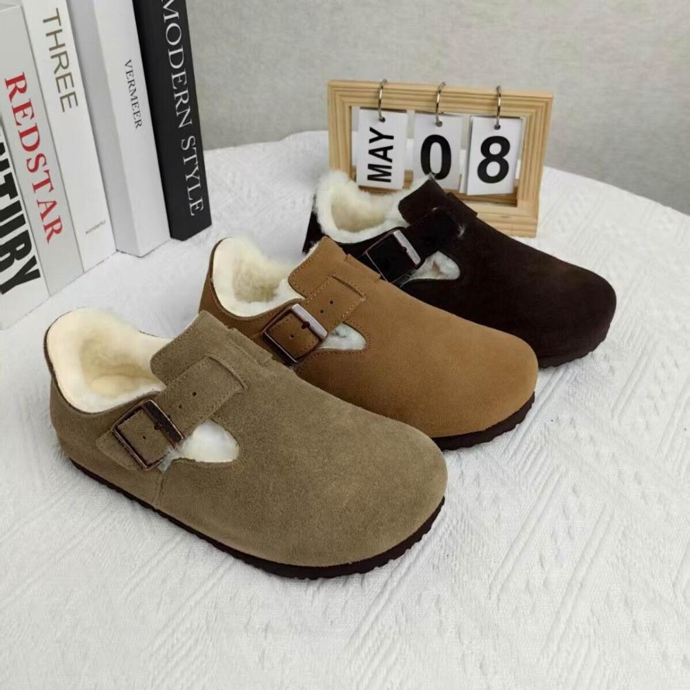 桑坡牛皮羊毛勃肯鞋女冬季加絨防寒保暖真皮軟木復古情侶博肯棉鞋