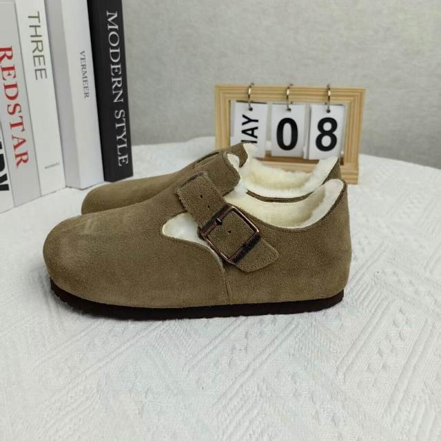 桑坡牛皮羊毛勃肯鞋女冬季加絨防寒保暖真皮軟木復古情侶博肯棉鞋