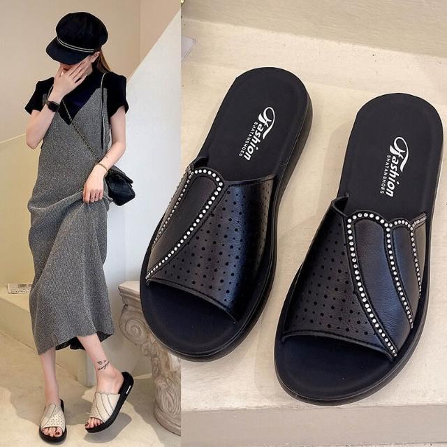 真皮媽媽拖鞋女士夏季外穿軟底防滑涼拖中年婦女中老年人女款外出