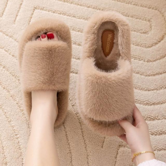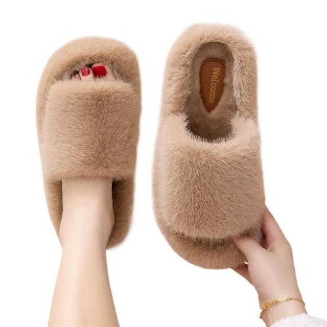網紅毛毛拖鞋 女款外穿拖鞋 一字拖 厚底拖鞋 居家棉拖鞋 冬季保暖拖鞋 絨毛拖鞋