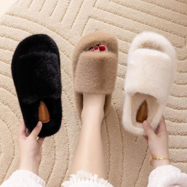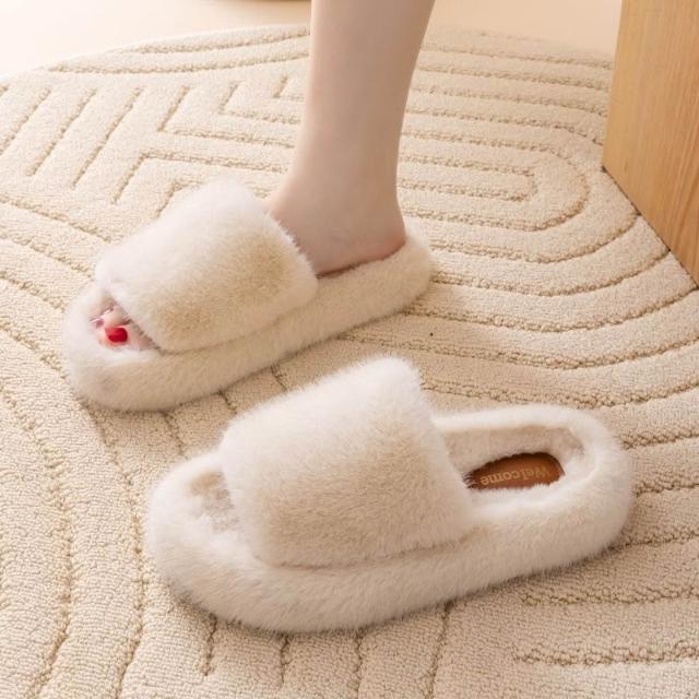 網紅毛毛拖鞋 女款外穿拖鞋 一字拖 厚底拖鞋 居家棉拖鞋 冬季保暖拖鞋 絨毛拖鞋
