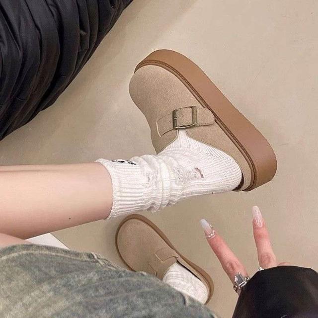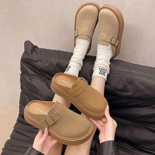 復古厚底勃肯包頭半拖鞋女2025秋季新款增高外穿懶人一腳蹬博肯鞋