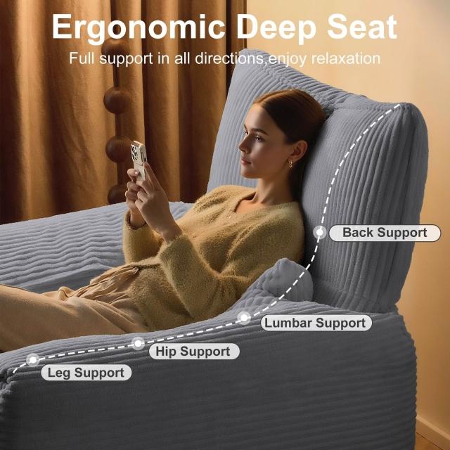節省空間的灰色燈芯絨懶人沙發床可躺可睡適合多種生活場景