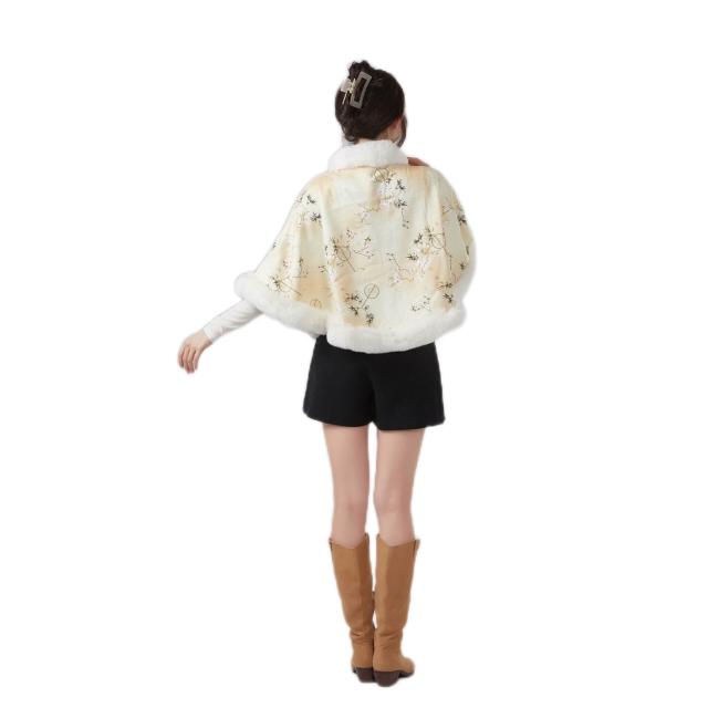 新款國風加絨仿獺兔毛絨領披肩鬥篷旗袍新中式外搭披風保暖外套女