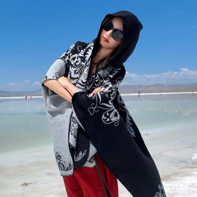 紅色圍巾冬季保暖加厚民族風時尚旅遊穿搭圍巾鬥篷披肩外搭大披風