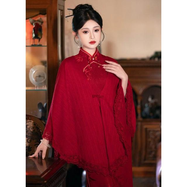 紅色披肩搭配旗袍敬酒服新娘外搭針織開衫外套遮肉顯瘦中國風喜慶