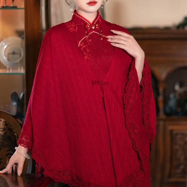 紅色披肩搭配旗袍敬酒服新娘外搭針織開衫外套遮肉顯瘦中國風喜慶