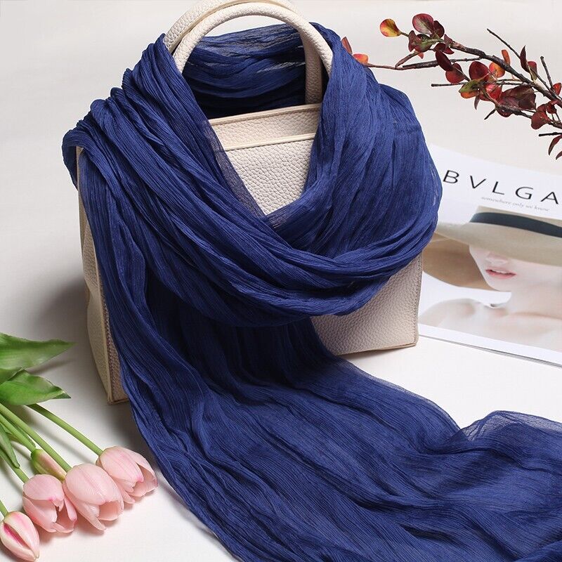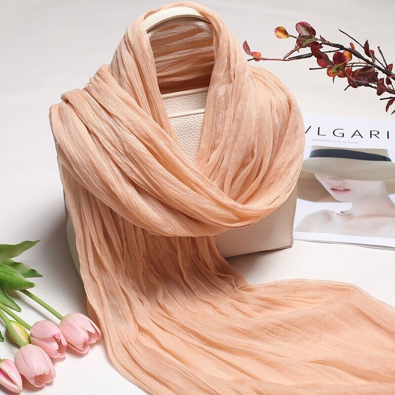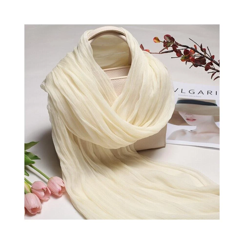 正品絲巾 100%真絲 桑蠶絲圍巾 皺絲巾 米白色絲巾 秋冬保暖披肩 頭巾 大尺寸披肩 輕奢絲巾