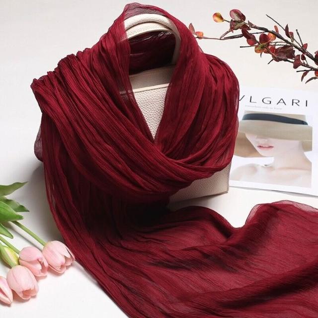 正品絲巾 100%真絲 桑蠶絲圍巾 皺絲巾 米白色絲巾 秋冬保暖披肩 頭巾 大尺寸披肩 輕奢絲巾