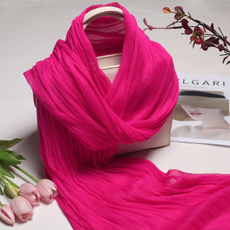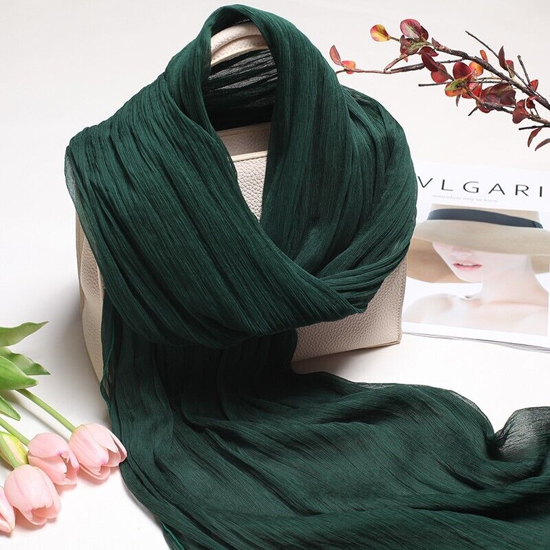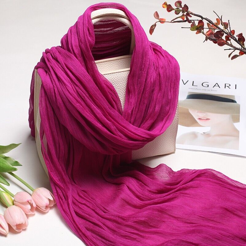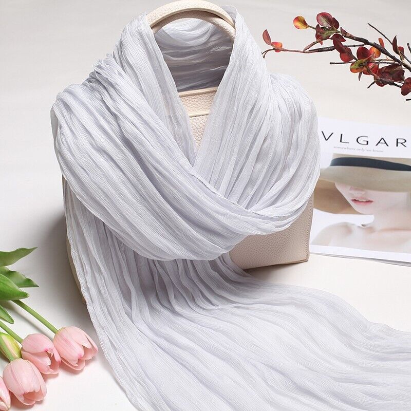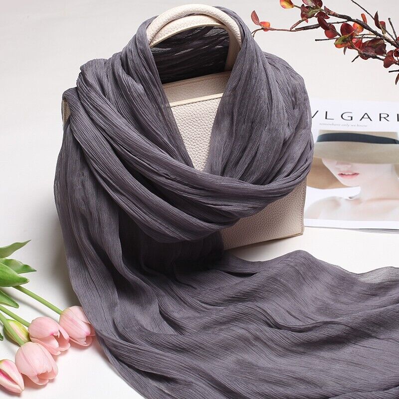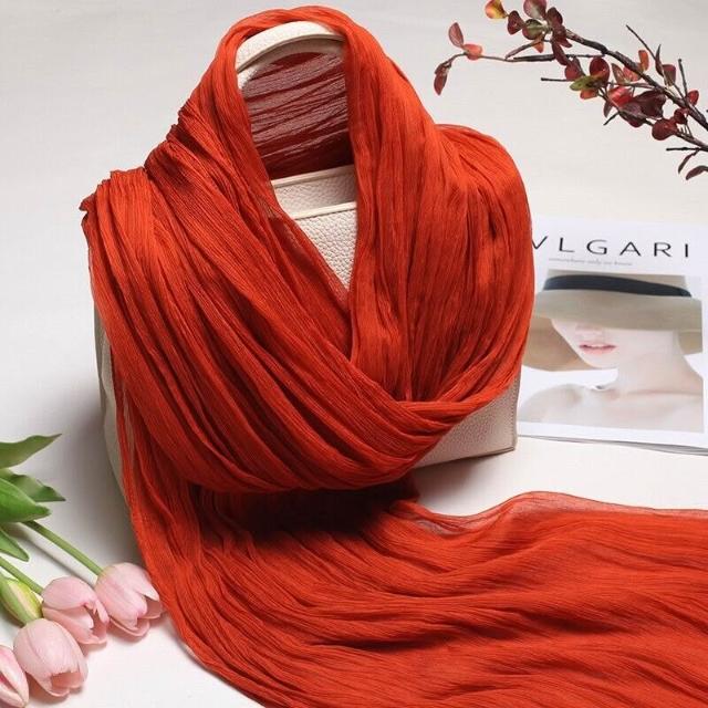 正品絲巾 100%真絲 桑蠶絲圍巾 皺絲巾 米白色絲巾 秋冬保暖披肩 頭巾 大尺寸披肩 輕奢絲巾