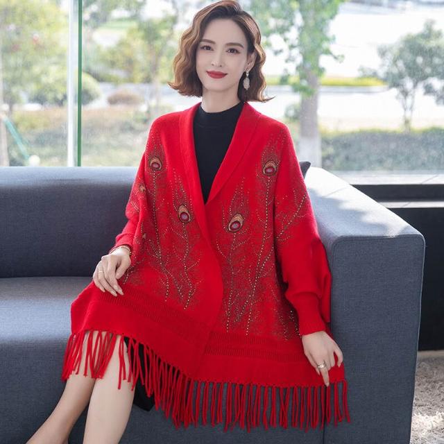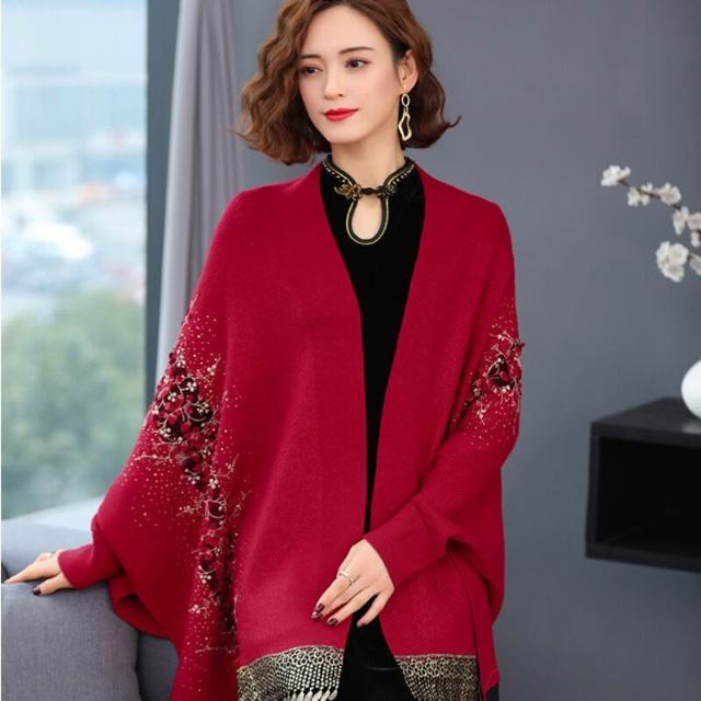 秋冬新款圍巾披肩旗袍披肩女百搭外套高端喜婆婆披風繡花流蘇針織