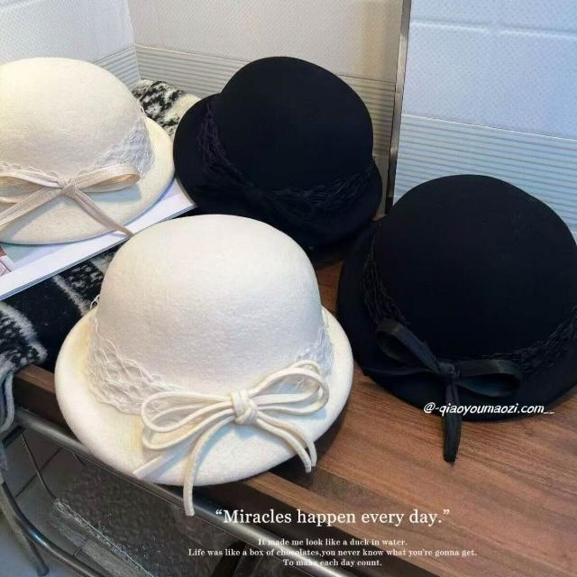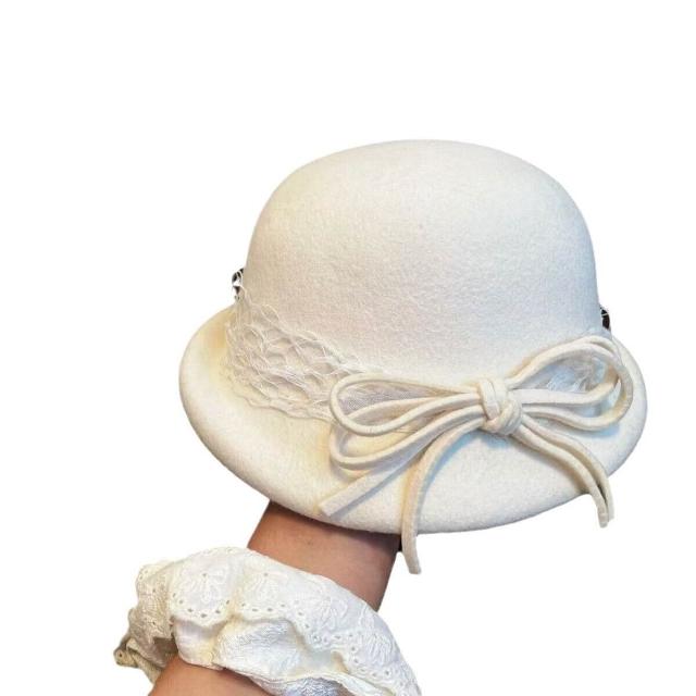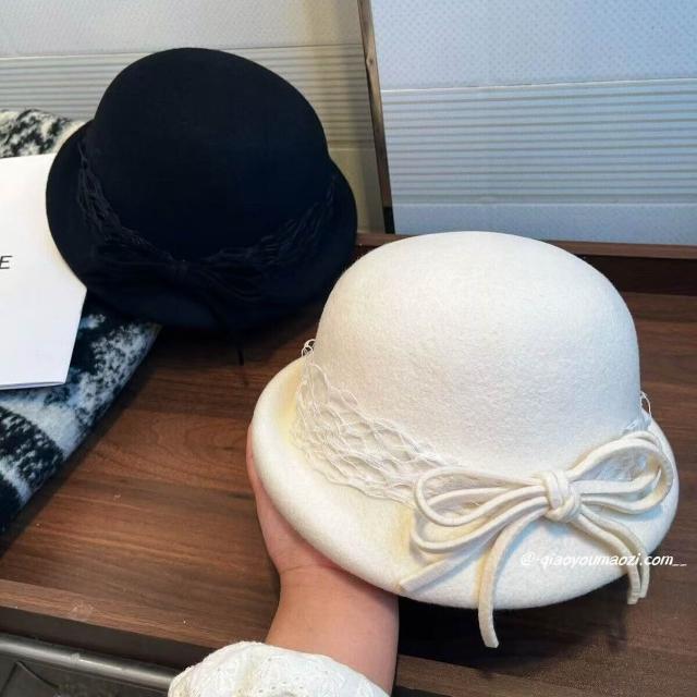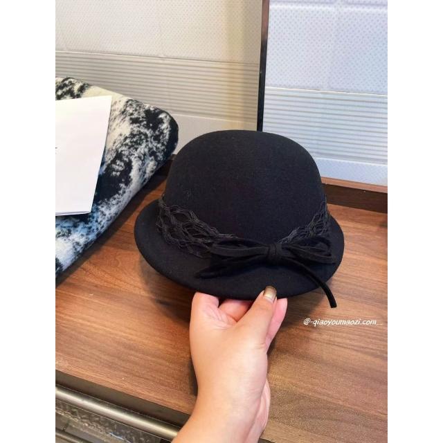 小紅書推薦款羊毛 100% 圓頂蝴蝶結禮帽千金風優雅氣質盆帽漁夫帽