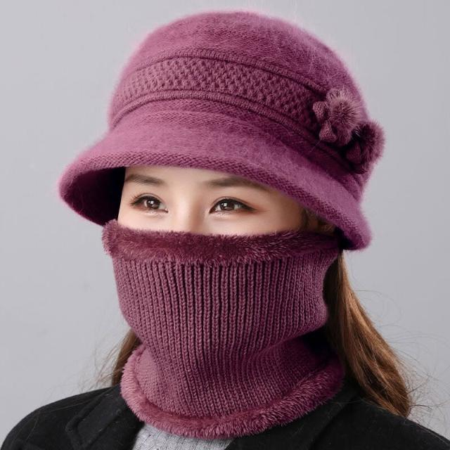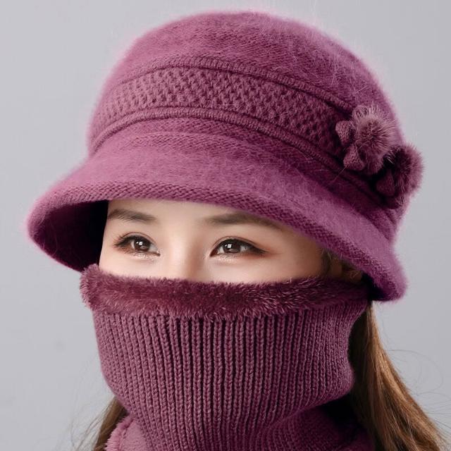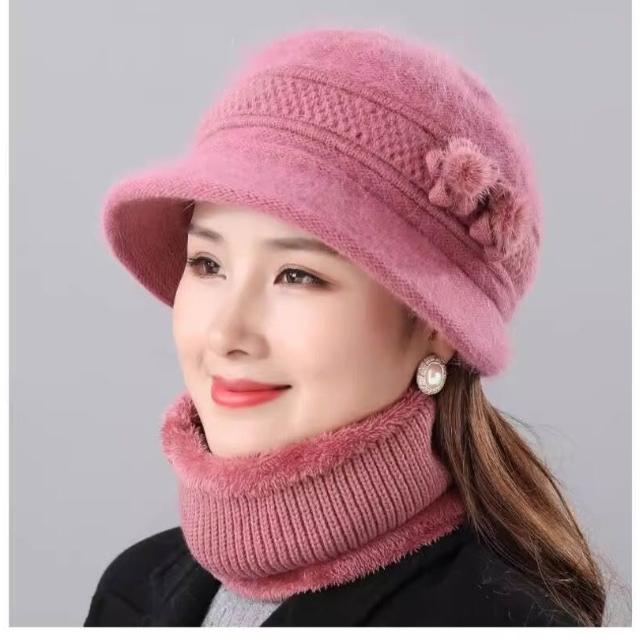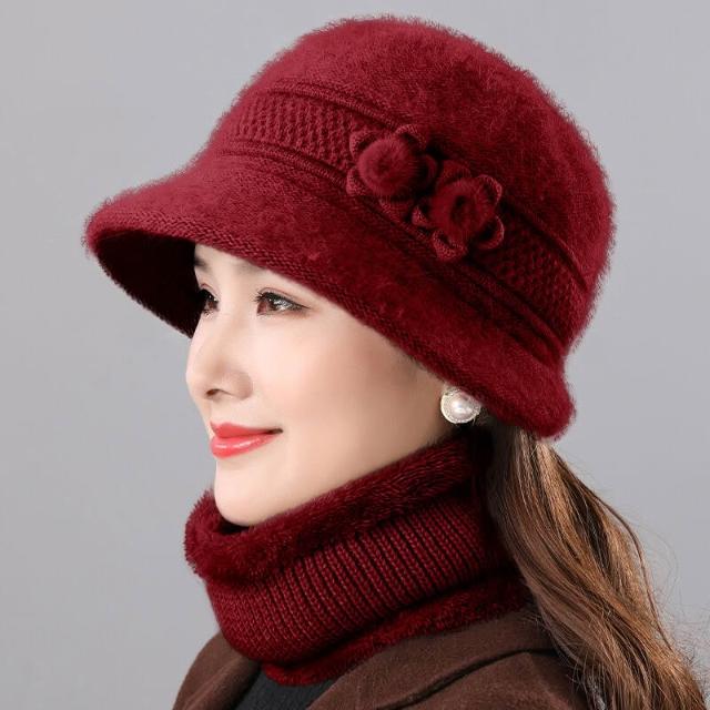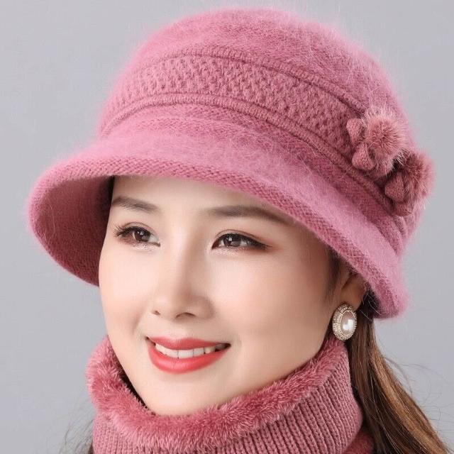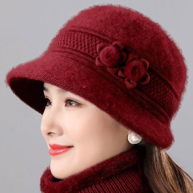 中老年人媽媽冬天帽子女兔毛針織盆帽奶奶老太太加絨厚保暖毛線帽