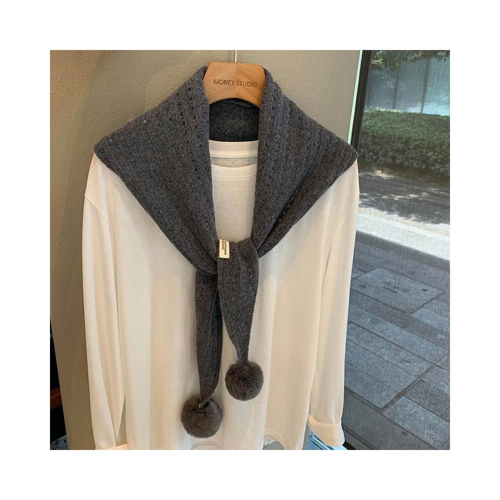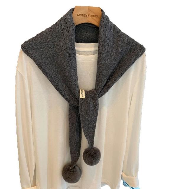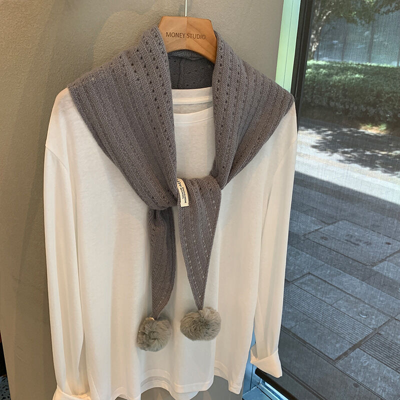 韓系羊毛镂空掛毛球圍巾設計師款三角巾搭肩披肩疊穿裝飾可愛坎肩