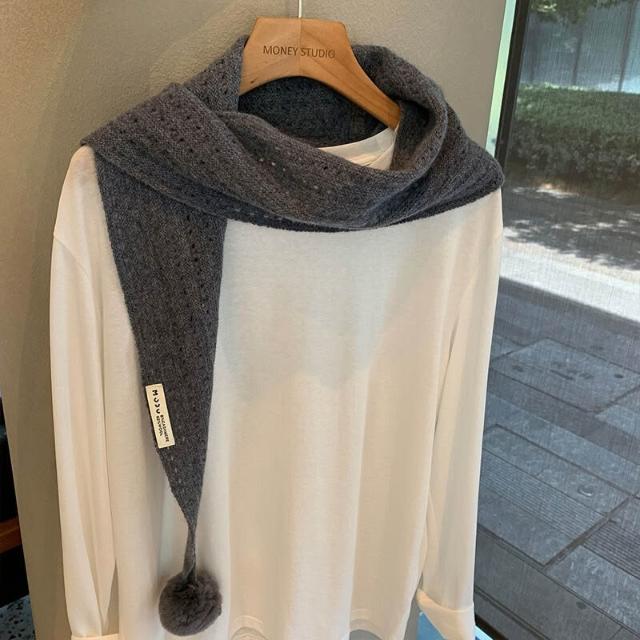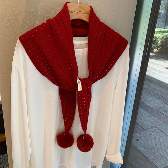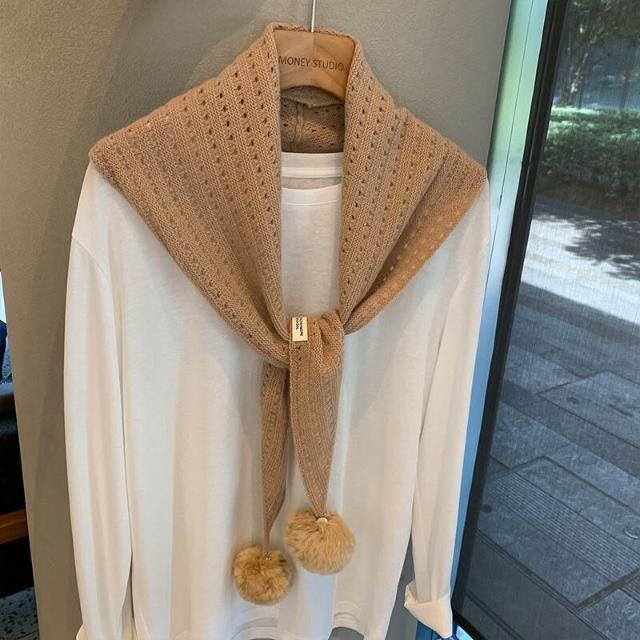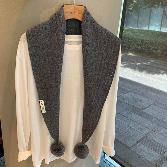 韓系羊毛镂空掛毛球圍巾設計師款三角巾搭肩披肩疊穿裝飾可愛坎肩