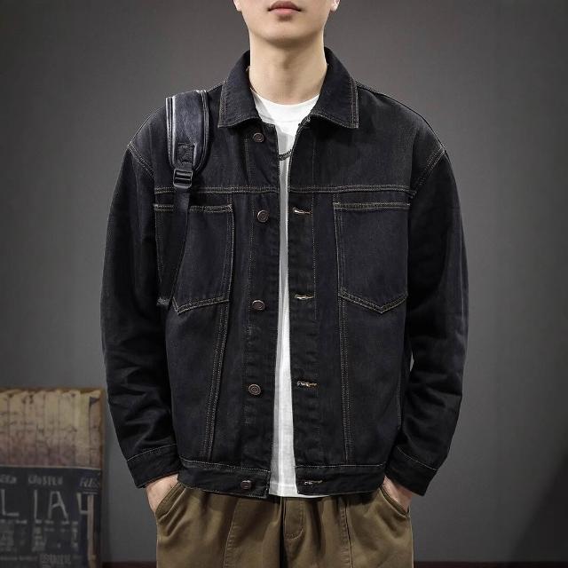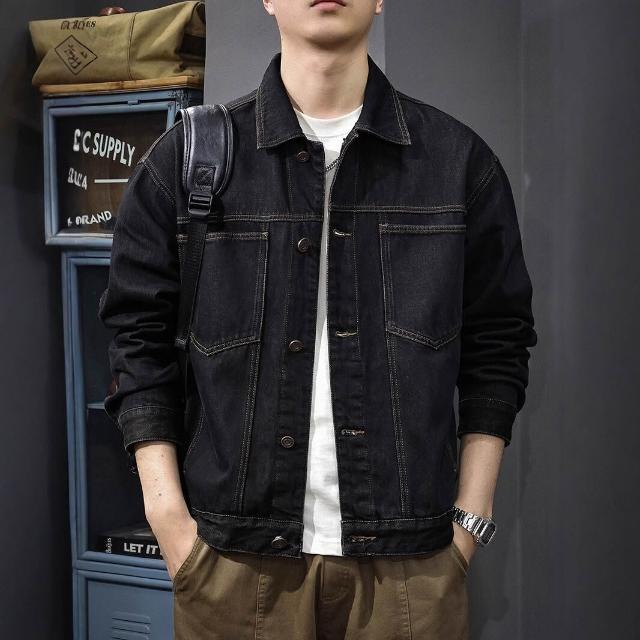 春季高級感原色純棉牛仔外套男美式復古水洗重磅休閑男士夾克