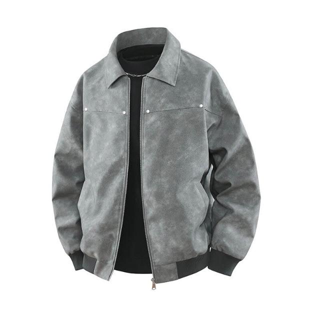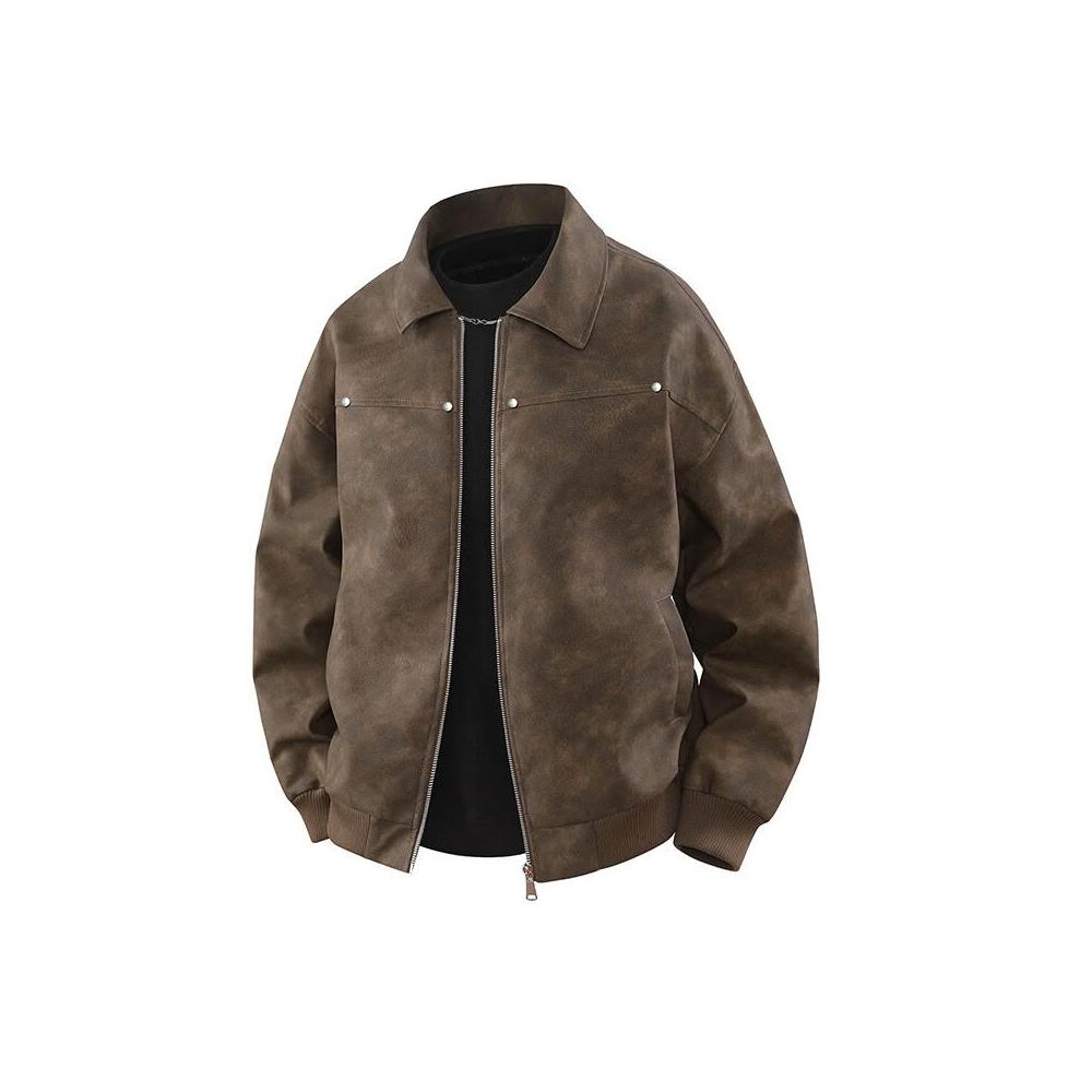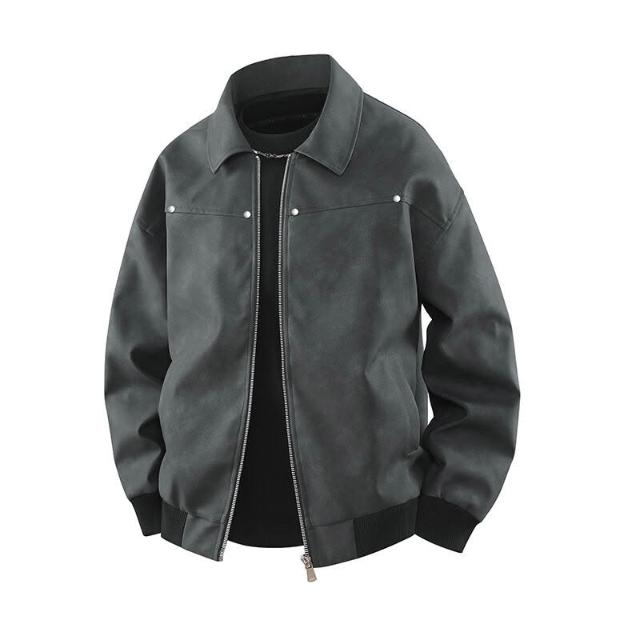 美式復古春秋款翻領皮衣外套男美拉德高級感痞帥情侶夾克外套港風