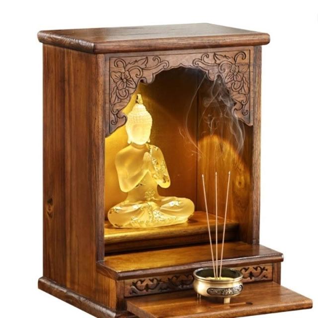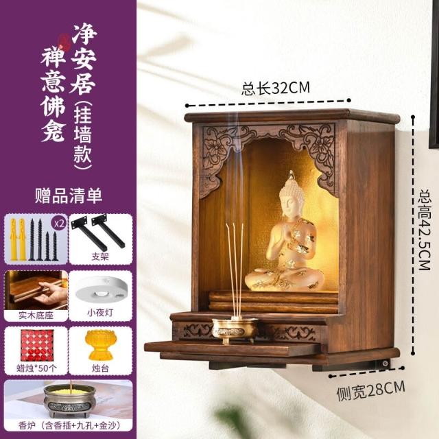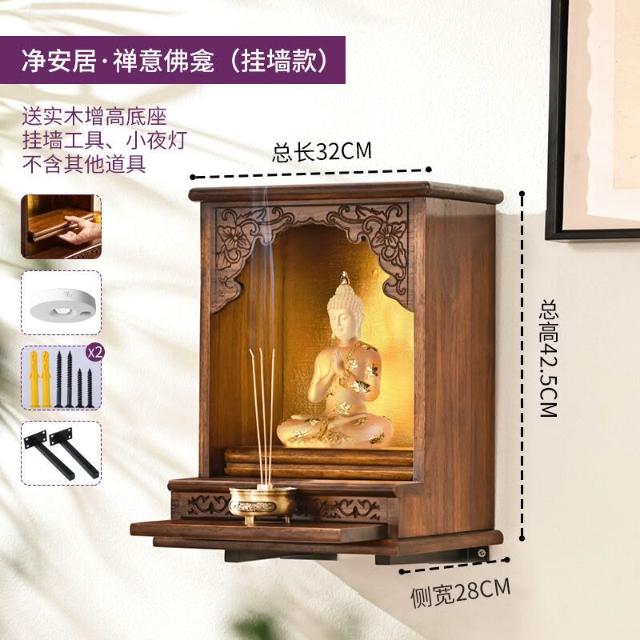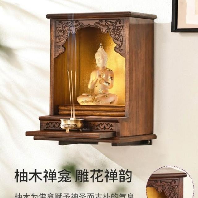 實木佛龛供桌神臺櫃佛臺櫃子神龛壁掛式小型佛櫃佛龛櫃絹花通用