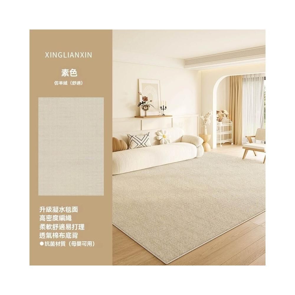 仿羊絨地毯 客廳地墊 大尺寸地墊 棉麻底背 奶油風 地毯客廳 素色地毯 防水臥室免洗可擦 防汙高級感沙髮地墊