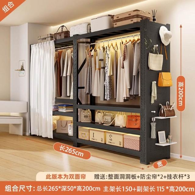 加厚貨架衣櫃家用蝴蝶孔組合衣櫃臥室房衣帽間開放式角鋼掛衣架子