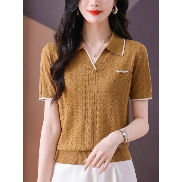 夏季短袖 T恤 新款上架 桑蠶絲短袖女士薄款小衫2026新款夏季時尚針織衫媽媽裝t恤上衣女 初禾精品