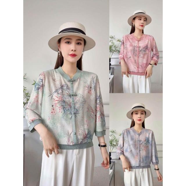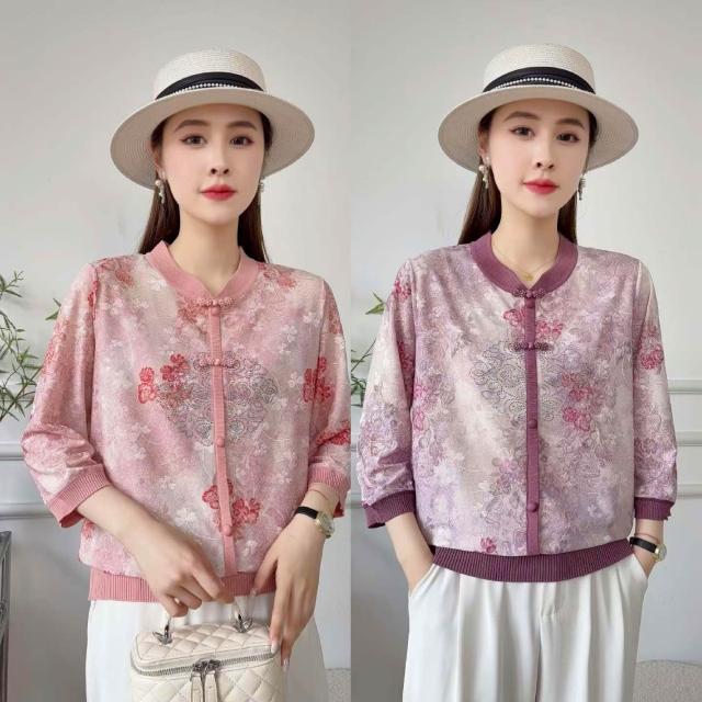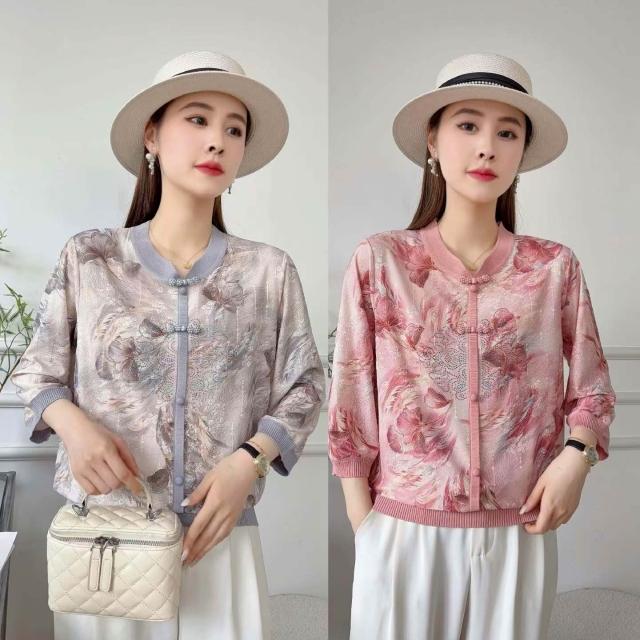 夏季短袖 T恤 新款上架 2026新款媽媽春裝立領長袖T恤時尚中老年女裝燙鉆印花薄打底上衣 初禾精品