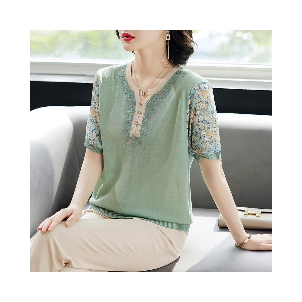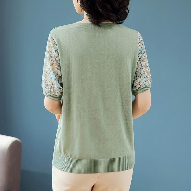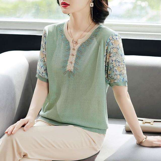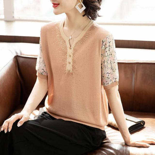 夏季短袖 T恤 新款上架 母親節2024新款媽媽夏裝冰絲T恤中年女夏季短袖中老年人洋氣小衫 初禾精品
