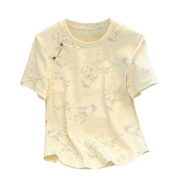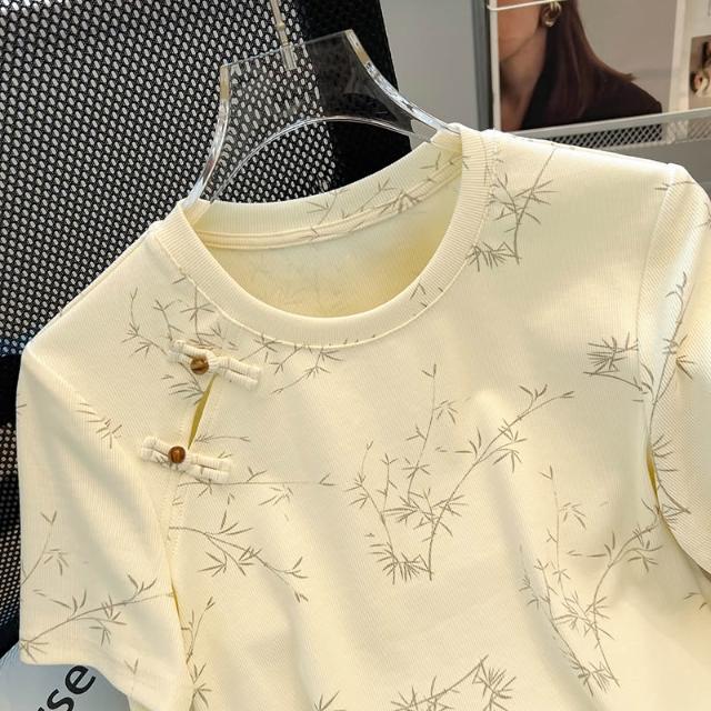 夏季短袖 T恤 新款上架 新中式盤扣短袖t恤女2024年夏季新款國風正肩修身顯瘦上衣 初禾精品
