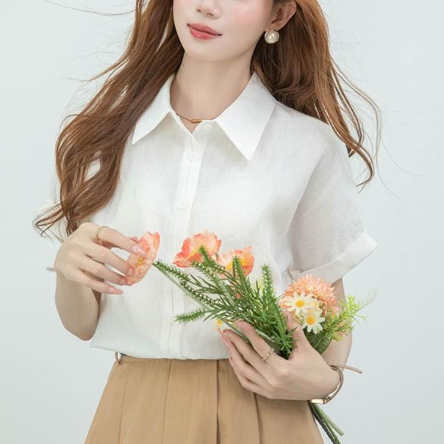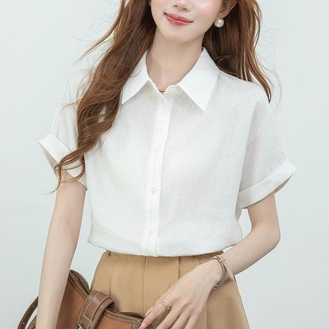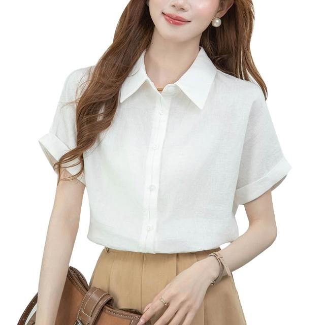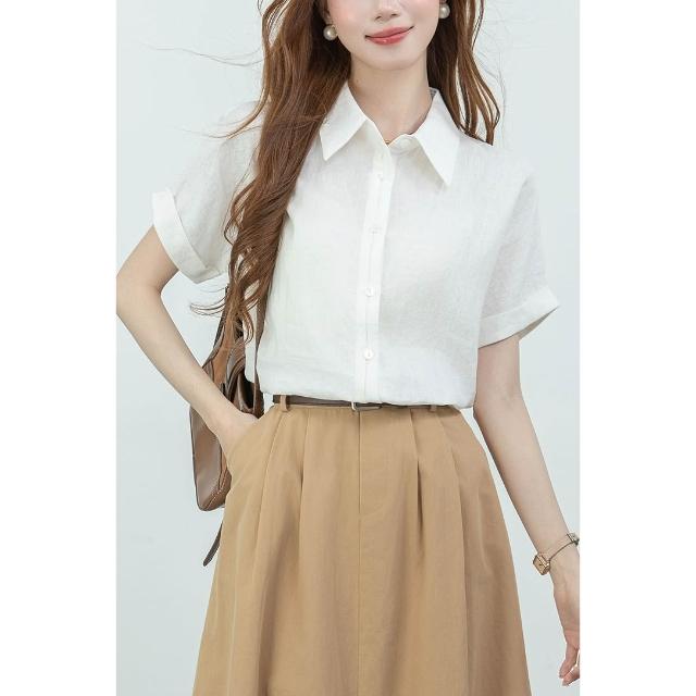 夏季短袖 T恤 新款上架 2026實拍新款雙門襟透氣短袖襯衫女夏季輕薄寬松通勤襯衣 初禾精品