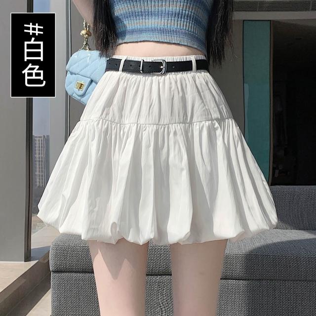 短褲 七分褲 簡約穿搭 實拍 2026春夏高腰顯瘦腰帶設計感甜美褶皺蓬蓬花苞裙a字半身短裙 初禾