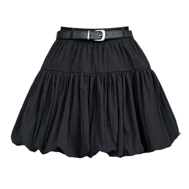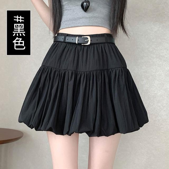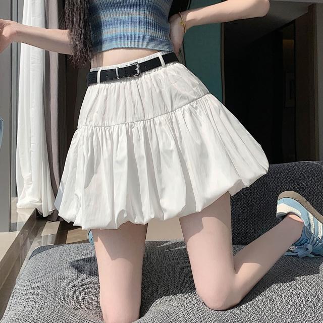 短褲 七分褲 簡約穿搭 實拍 2026春夏高腰顯瘦腰帶設計感甜美褶皺蓬蓬花苞裙a字半身短裙 初禾