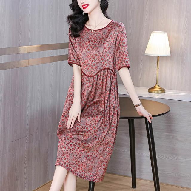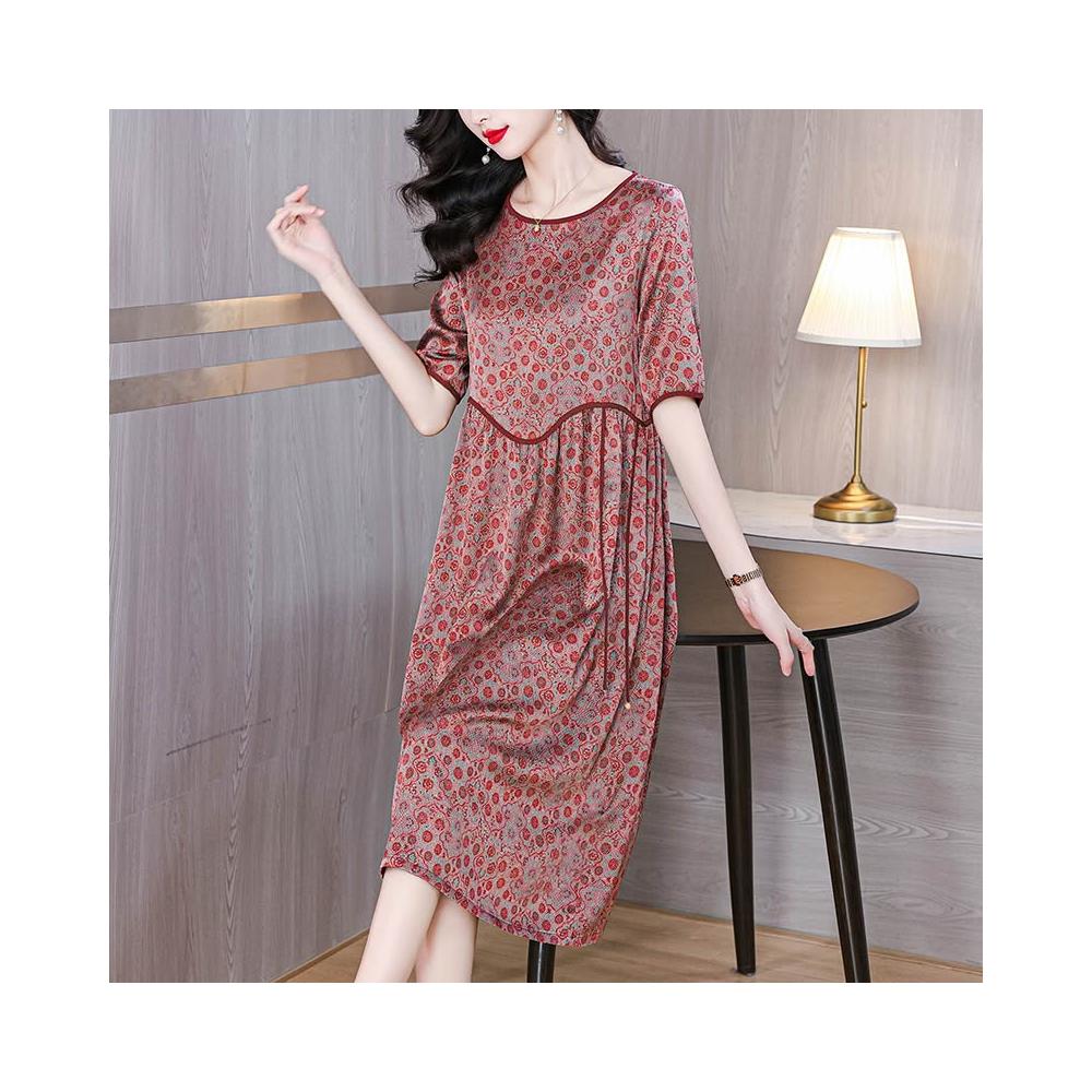 夏季新品 連衣裙 日常百搭 2026夏季新款桑蠶絲杭州絲綢真絲連衣裙中國風氣質裙子女媽媽 初禾精品