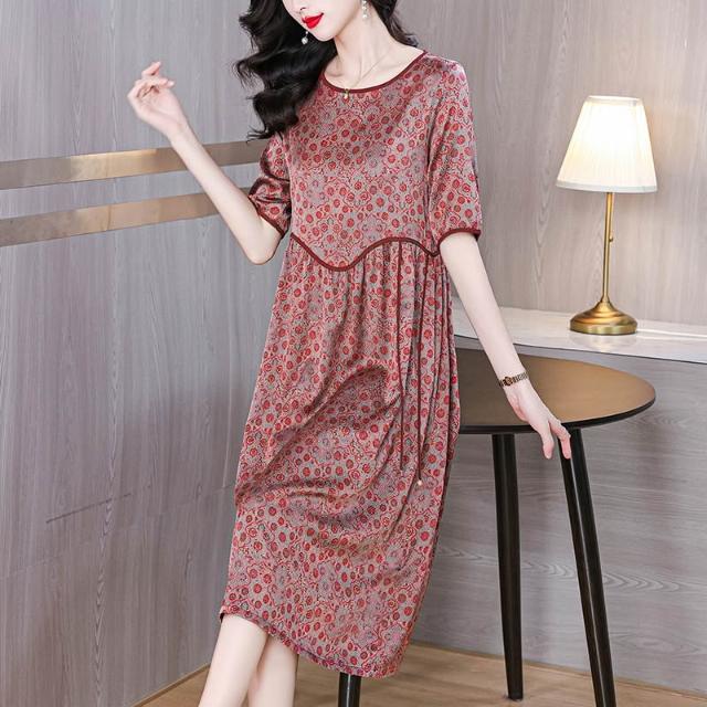 夏季新品 連衣裙 日常百搭 2026夏季新款桑蠶絲杭州絲綢真絲連衣裙中國風氣質裙子女媽媽 初禾精品