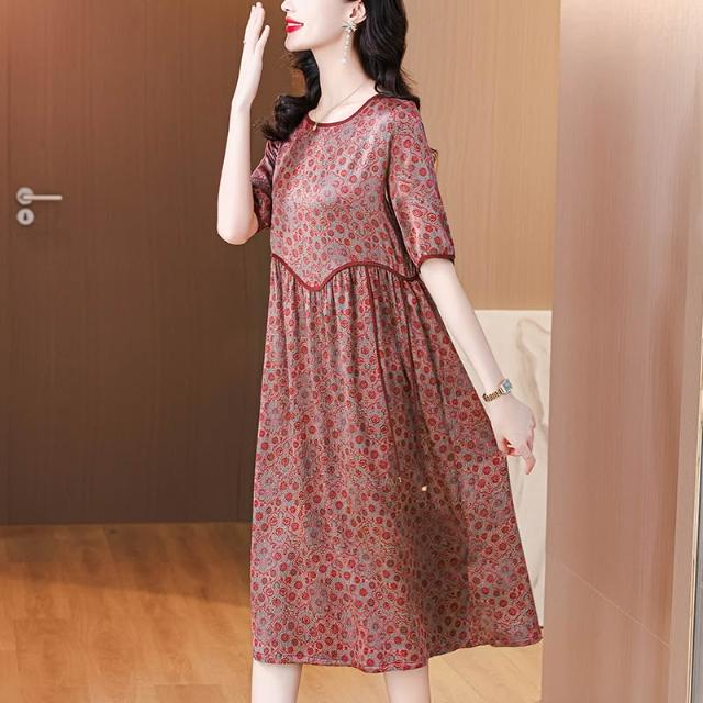 夏季新品 連衣裙 日常百搭 2026夏季新款桑蠶絲杭州絲綢真絲連衣裙中國風氣質裙子女媽媽 初禾精品