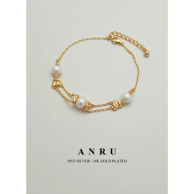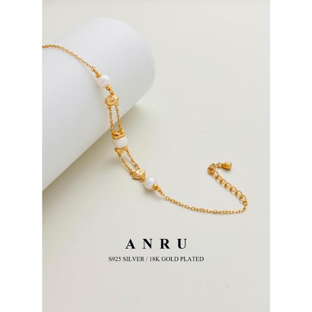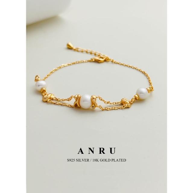 ANRU 安璐熔金暮雲 純銀珠珍手鍊 S925 18K金色 天然珍珠 手鍊 手環 輕奢 x 優雅 x 質感