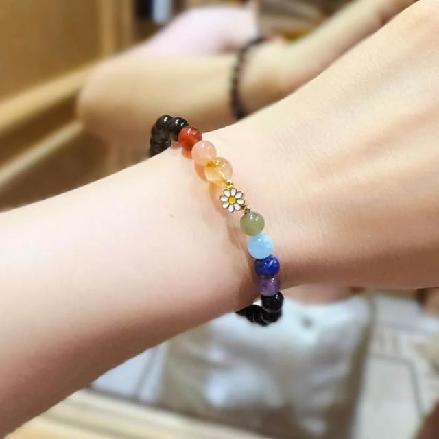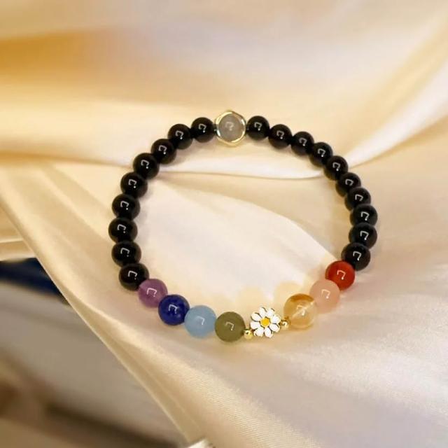 彩虹雛菊|七脈輪。黑瑪瑙。水晶手鍊|綜合能量|EnCounter Love 隱愛