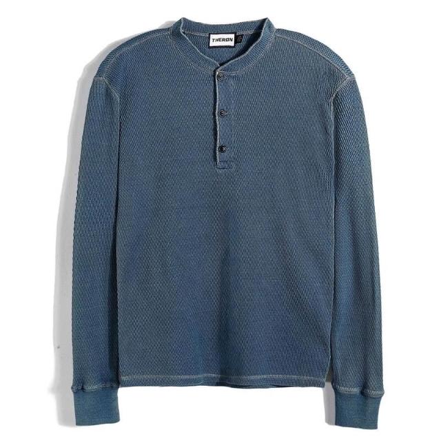 男裝 - 靛藍亨利領 恤男長袖衫 2