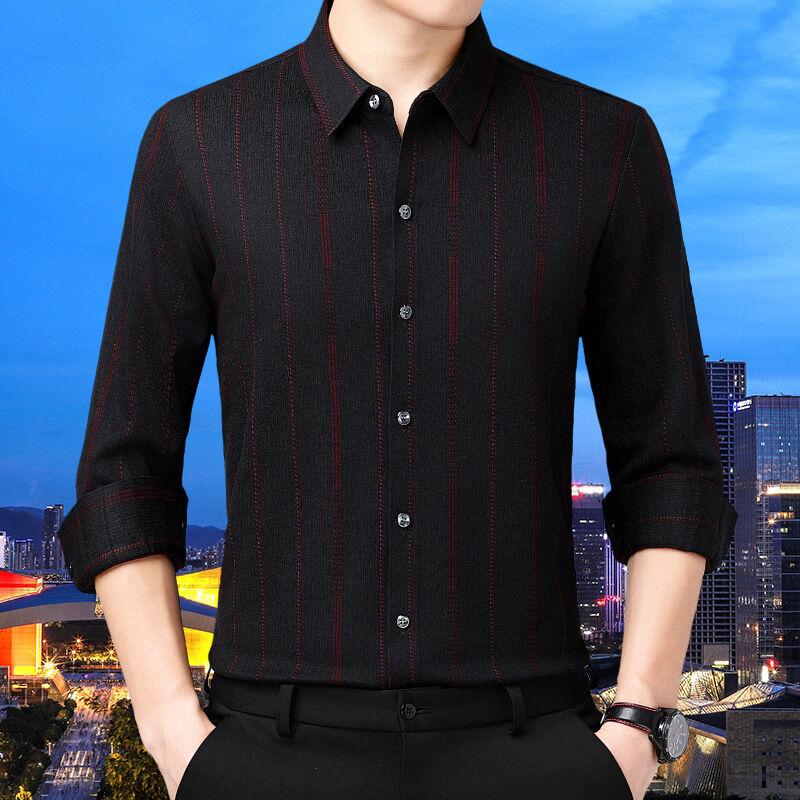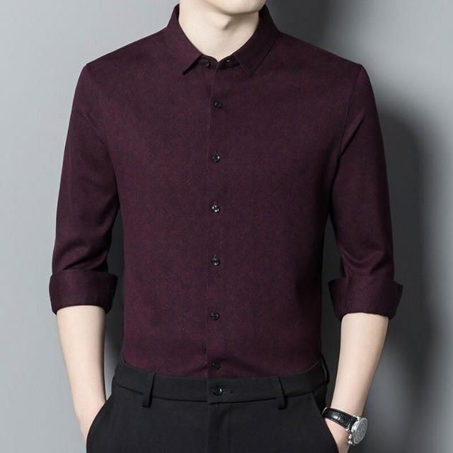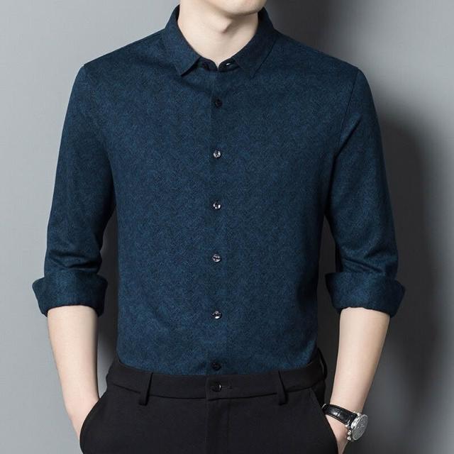 品牌羊絨襯衣2025秋裝新款中年男式商務厚款暗花長袖襯衫9101 0 4