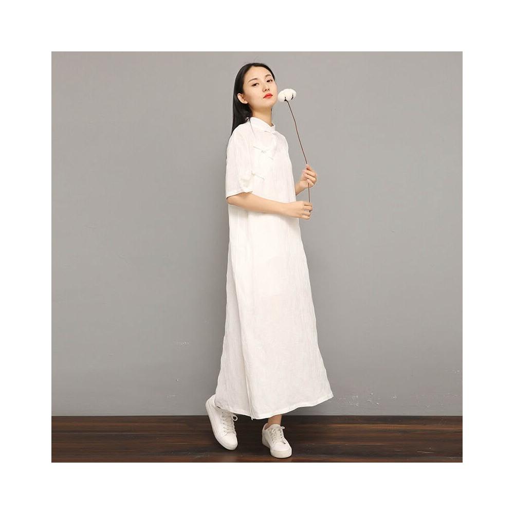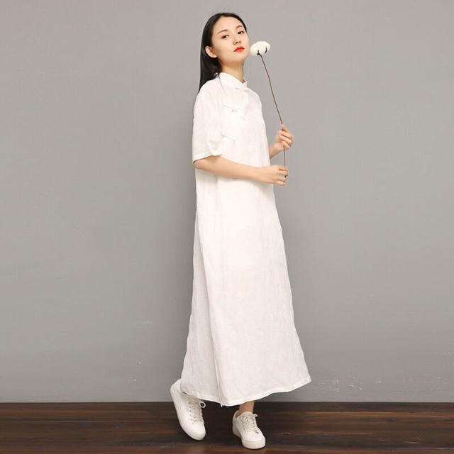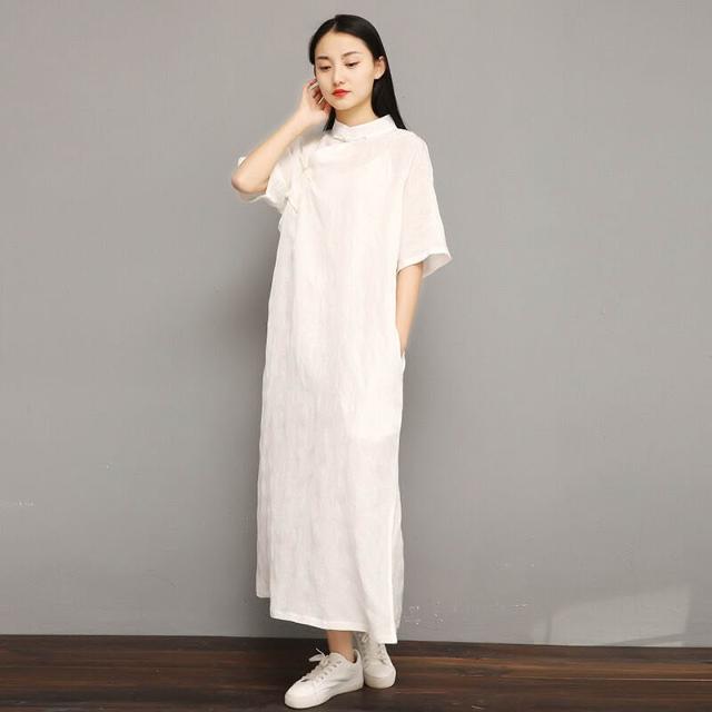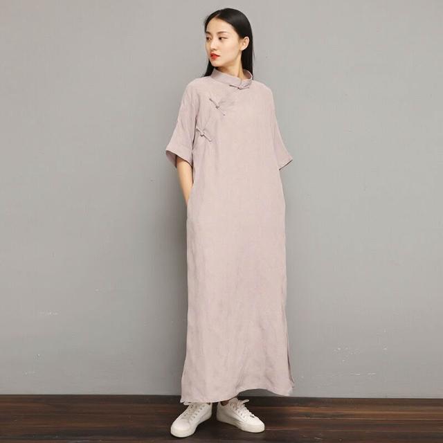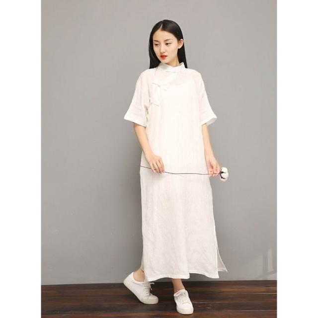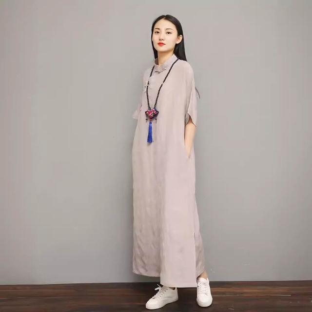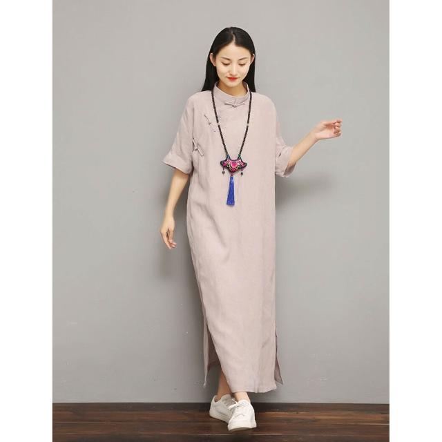 2024春夏款天絲亞麻提花斜襟五分袖改良旗袍 連衣裙 156