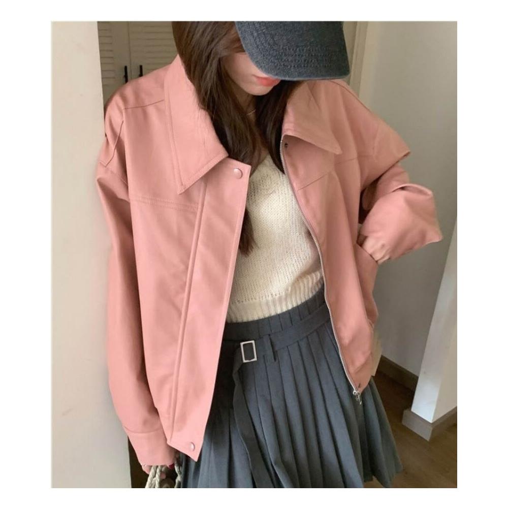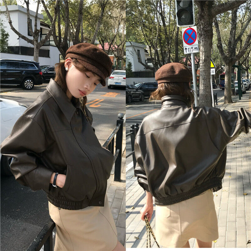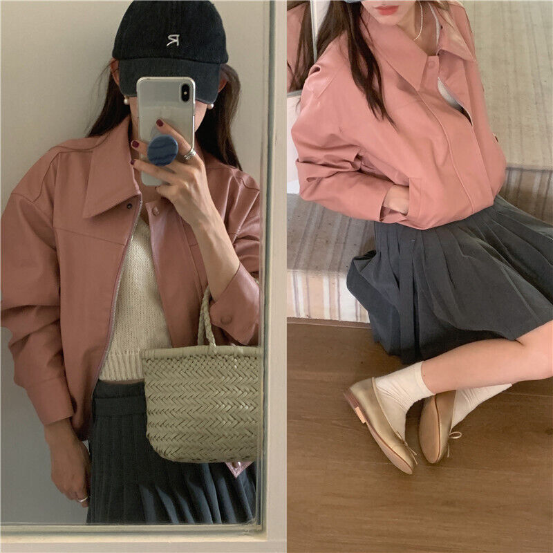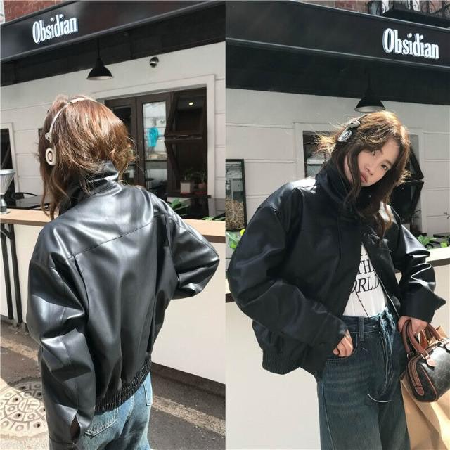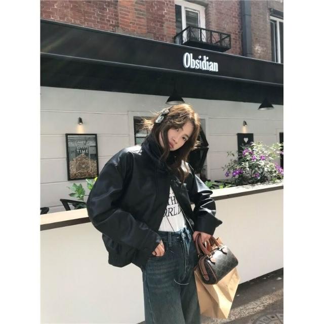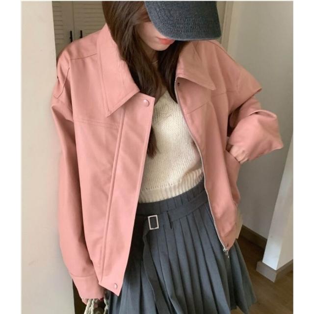 美式翻領短款皮衣外套女甜酷帥氣休閑拉鏈 皮夾克機車服 5 8