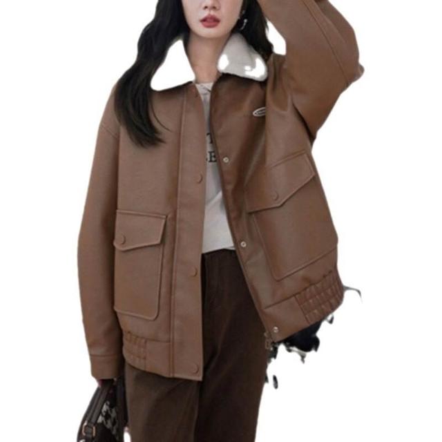 皮衣女冬絨厚2024年新款皮毛一體機車服皮夾克小個子短外套皮 5 0